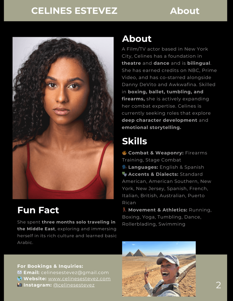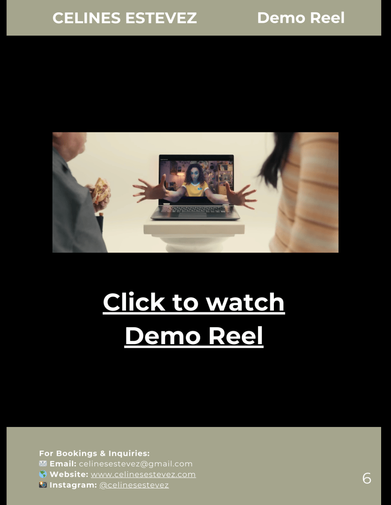 Please click below to download Celines Estevez’s Electronic Press Kit (EPK), featuring her bio, headshots, resume, credits, and more.